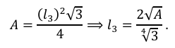 As abelhas poderiam utilizar qualquer uma dessas três formas, mas até mesmo as operárias não gostam de realizar trabalho desnecessário, então qual dessas três opções utilizaria um menor perímetro para que a menor quantidade de cera fosse utilizada? Agora, suponhamos que a área é igual para ambos os polígonos (𝐴) e vamos analisar qual deles tem menor perímetro. Denotando 𝐴 a área dos polígonos, 𝑙𝑛 o lado e 𝑃𝑛 o perímetro dos polígonos de 𝑛 lados, com 𝑛 = 3, 4 e 6. A área do triângulo equilátero é dada por