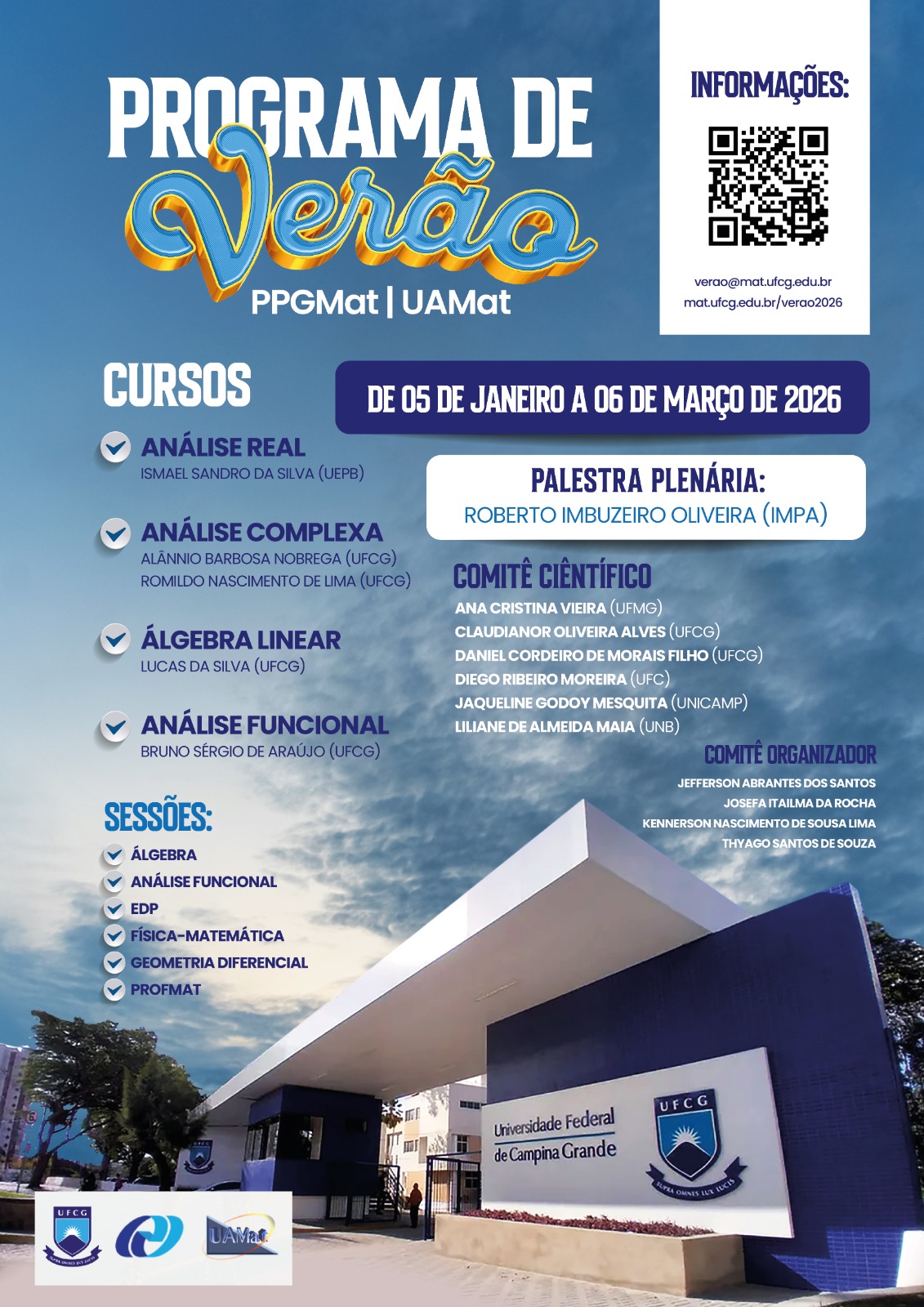 As inscrições serão realizadas exclusivamente pelo site oficial: https://mat.ufcg.edu.br/verao2026/