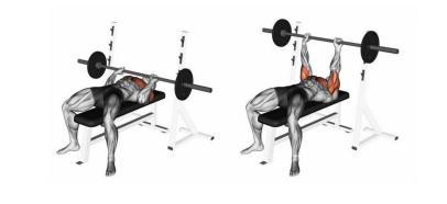 No supino reto, o banco fica paralelo ao chão, e empurramos o peso para cima formando um ângulo de 90° do braço em relação com o corpo. Quando realizamos o exercício dessa maneira recrutamos o peitoral por inteiro, porém temos uma ênfase maior na porção medial do musculo, ou seja, no meio.