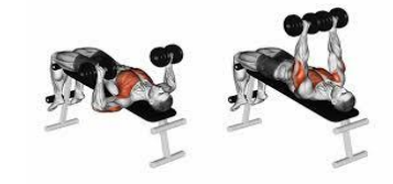 E por fim, o supino declinado, alteramos a angulação do banco em aproximadamente 30° em relação a posição inicial do banco, porém dessa vez declinamos o banco, baixamos ele ao invés de inclinarmos. Fazendo essa modificação conseguimos atingir melhor a parte inferior do peitoral.