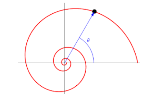 Assim, a espiral de Arquimedes é uma figura geométrica determinada por um ponto movendo-se a velocidade constante sobre uma reta que gira sobre um ponto de origem fixo a velocidade angular constante. Essa espiral pode ser representada em coordenadas polares (r, θ), onde r é o raio e θ o ângulo, descrita pela seguinte equação: